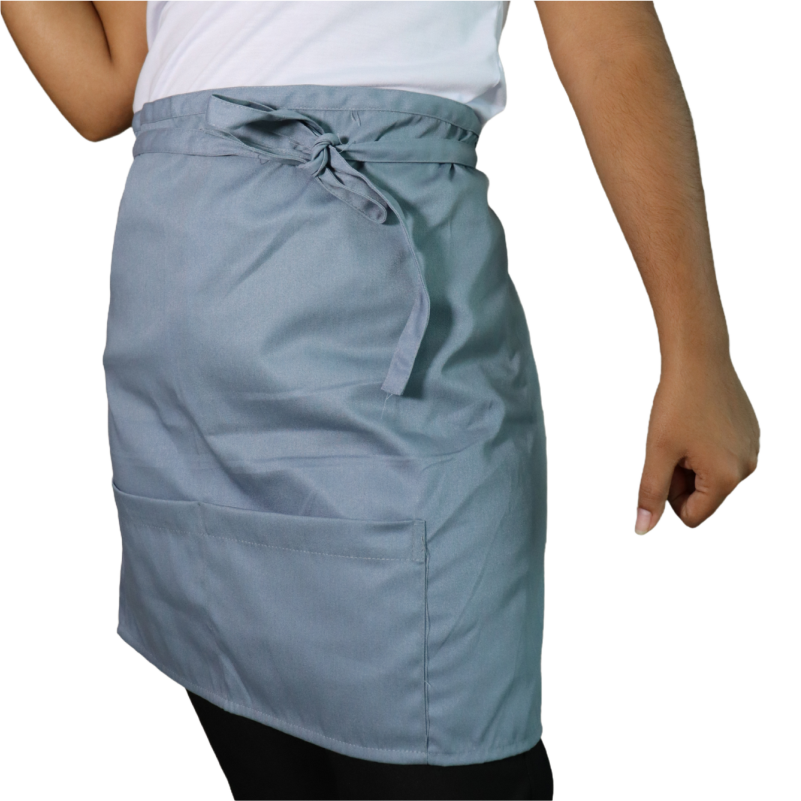 Avental meia cintura com design moderno, funcional, ideal para profissionais da gastronomia, estética e atendimento em geral. O modelo conta com bolso frontal duplo e acabamento em viés, oferecendo praticidade no dia a dia de trabalho. Fechamento por amarração que garante ajuste personalizado na cintura.