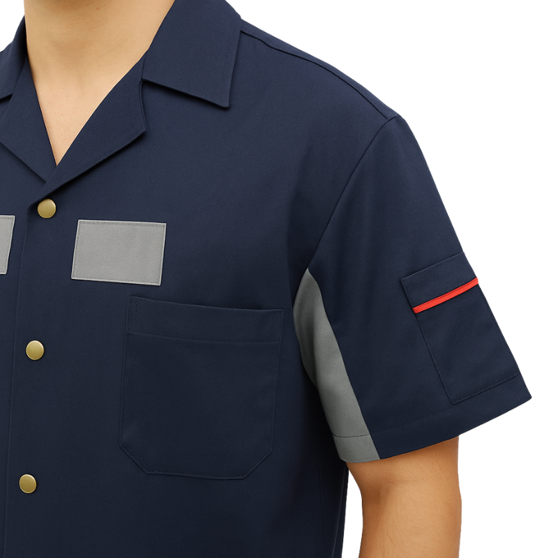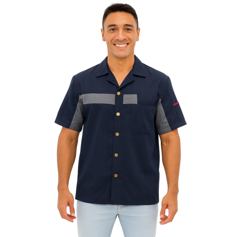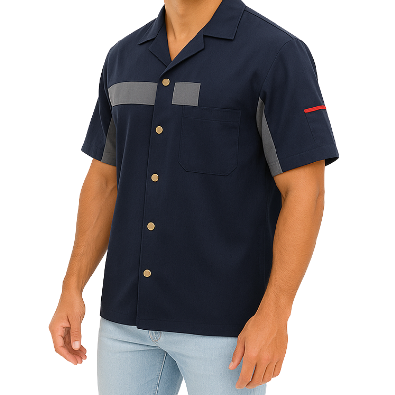 A camisa masculina de serviço com recortes e bolsos nas mangas é ideal para profissionais que buscam conforto, funcionalidade e estilo no ambiente de trabalho. Desenvolvida com modelagem moderna e acabamentos reforçados, proporciona liberdade de movimento e um visual atualizado, unindo praticidade e elegância.