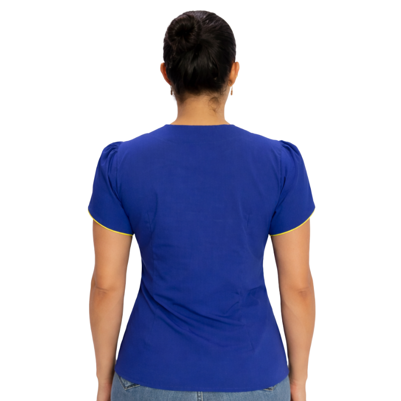 A Camisa feminina manga tulipa com vivo e gola redonda é uma peça elegante e funcional, desenvolvida para unir conforto, sofisticação e identidade visual. Seu design conta com gola redonda clássica e mangas tulipa com leve franzido na cabeça da manga, trazendo um acabamento delicado e feminino. O detalhe em vivo nas mangas valoriza o visual e adiciona um toque moderno, ideal para uso corporativo, uniformes profissionais ou ambientes institucionais.