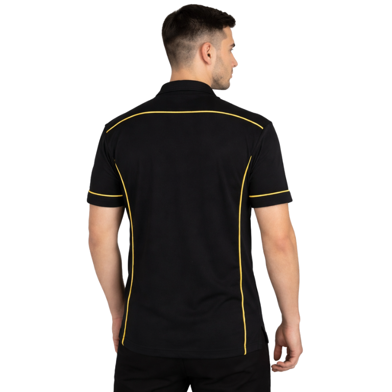 Camisa masculina polo manga curta gola pronta com recorte lateral e costas com vivos, ideal para quem busca um visual moderno e profissional. O destaque fica por conta dos recortes laterais e dos vivos aplicados nas costas e ombros, que agregam identidade visual e sofisticação à peça. Com excelente caimento e acabamento de alto padrão, é perfeita para uso no ambiente corporativo, eventos ou no dia a dia.
