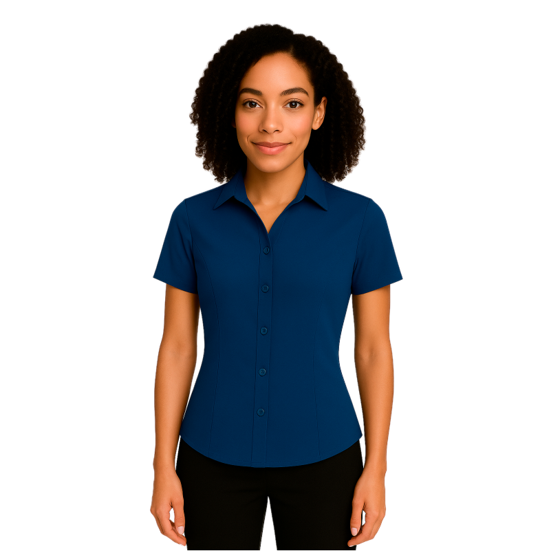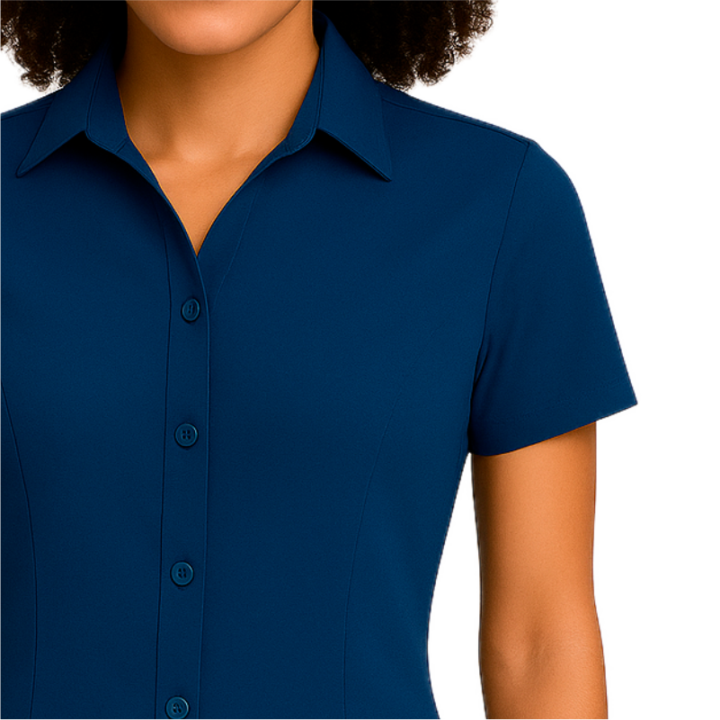 A Camisa feminina social manga curta com decote V, é uma peça elegante e versátil, ideal para quem busca sofisticação e conforto no dia a dia. Com modelagem levemente acinturada, proporciona um caimento impecável ao corpo, valorizando a silhueta feminina. O design clean e profissional torna essa camisa perfeita para ambientes corporativos, eventos formais e composições casuais refinadas.